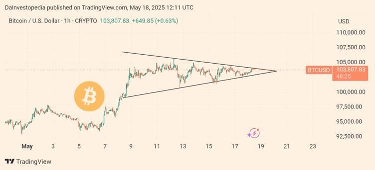 $BTC konsolidiert sich in einem symmetrischen Dreieck. Ein Ausbruch oder Zusammenbruch mit erfolgreichem Retest wird die kurzfristige Richtung bestaetigen. #Bitcoin #BTC Preisanalyse#